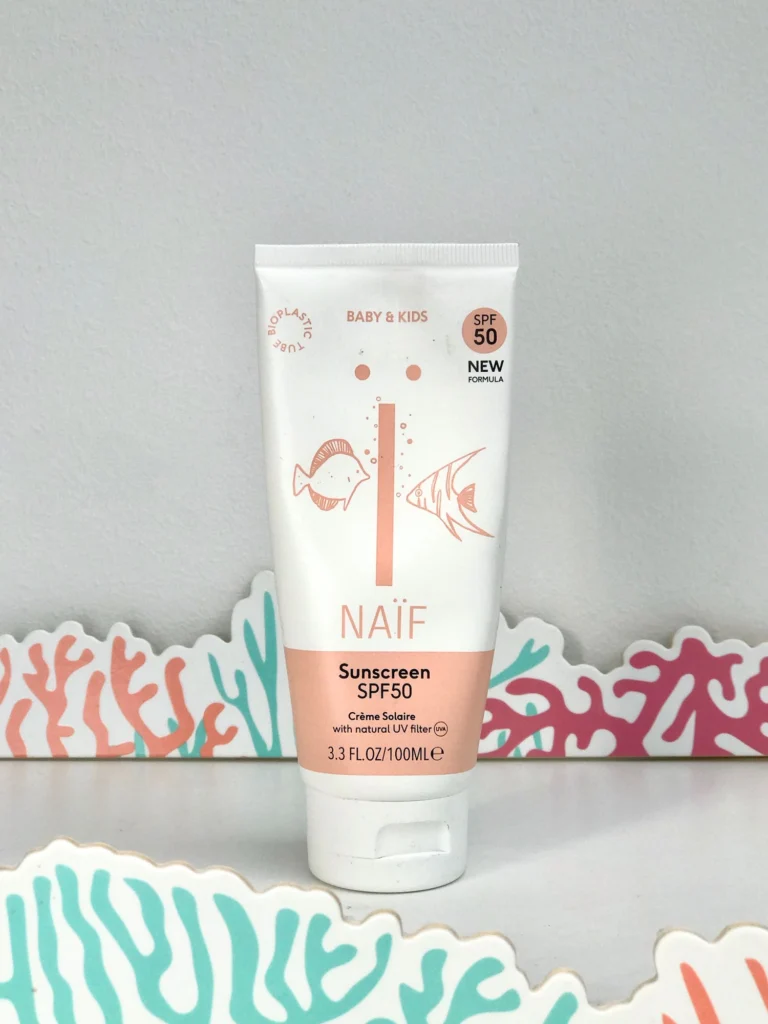 ♥♥♥ Moja ocena: Krema z UV zaščito Naif Sunscreen SPF50 Baby & Kids mi je zelo všeč, kljub temu, da se prvi hip na koži vidi nekoliko bel sloj, ki pa ob razmazovanju vseeno izgine. Maže se lepo, kot maslo. Vonj je zelo nežen in prijeten.