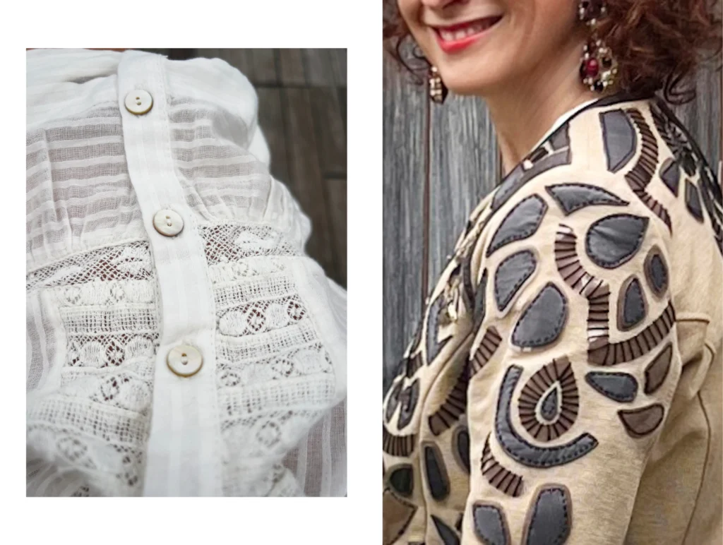 • detajle – čipke, vezenine in okrasni gumbi naj bodo natančno izdelani in prav tako iz naravnih materialov, saj delujejo bolj prestižno, npr. gumbi iz lupin školjk